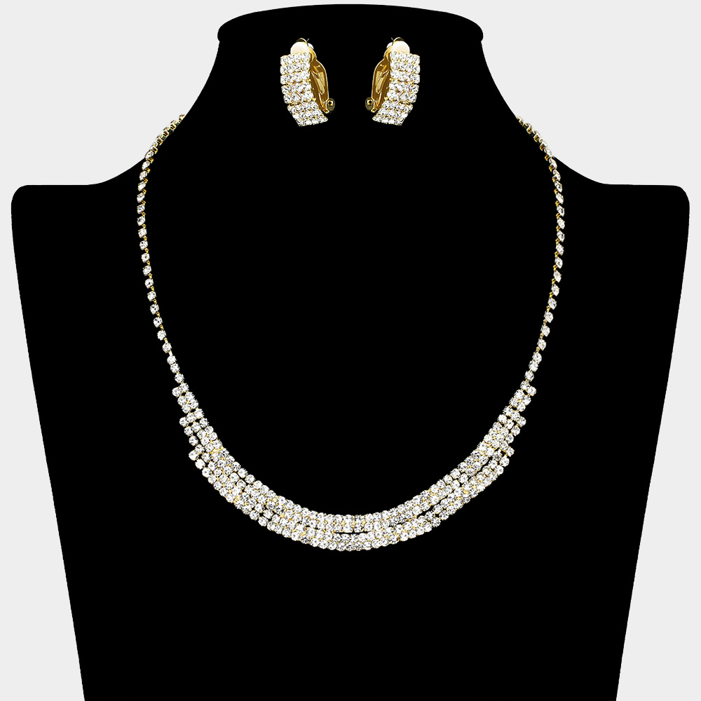 Rhinestone Paved Collar Necklace Clip on Earring Set