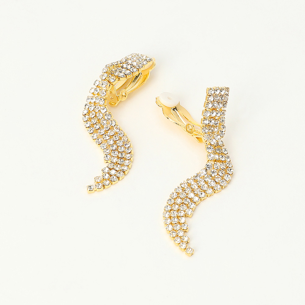 3Pairs - Round Stone Metal Hoop Tassel Fringe Earrings