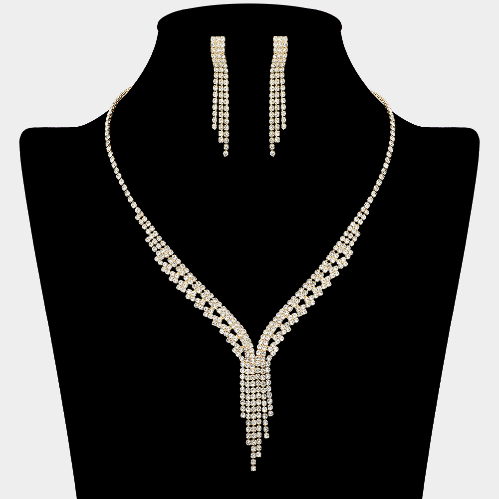 • This elegant necklace and earring set showcases a cascading crystal fringe design that adds dramatic movement and refined sparkle. Ideal for weddings, formal events, and evening wear, it creates a bold yet graceful statement that complements gowns, cocktail dresses, and special occasion looks with timeless sophistication.