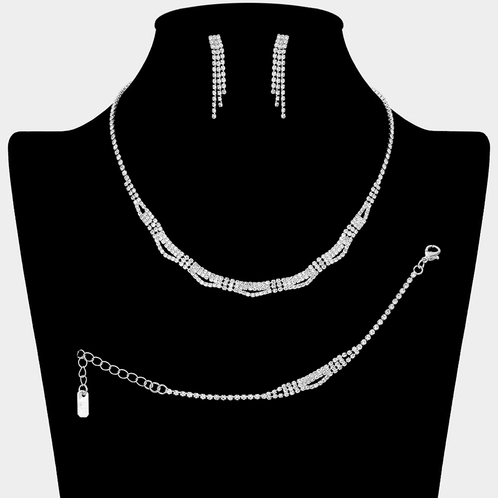 • Refined matching necklace, earring, and bracelet set designed with coordinated detailing for a polished and cohesive look. Ideal for weddings, formal events, parties, and evening wear. This versatile set delivers timeless elegance and effortless styling for special occasions.