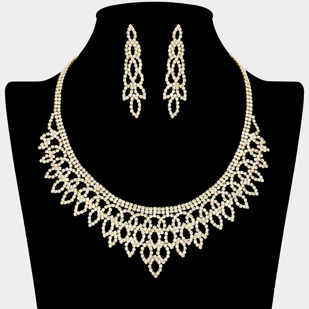 Crystal Rhinestone Pave Collar Necklace Clip On Earring Set
