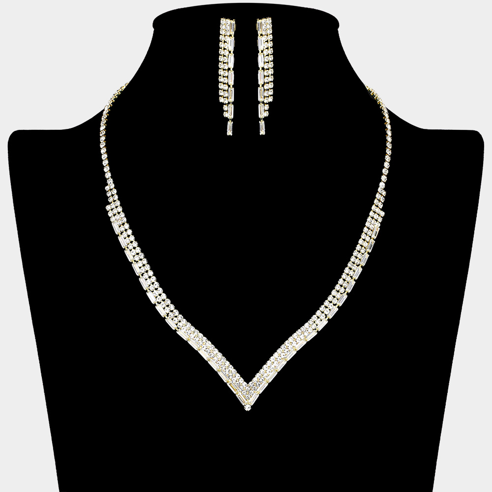 Rhinestone Paved V Shaped Necklace