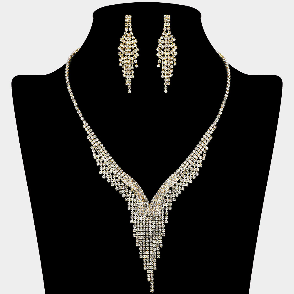 Rhinestone Paved Waterfall Fringe V Shaped Necklace