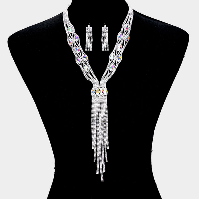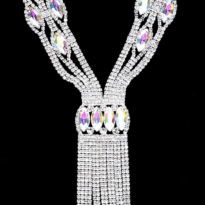 Rhinestone Trim Crystal Oval Fringe Necklace