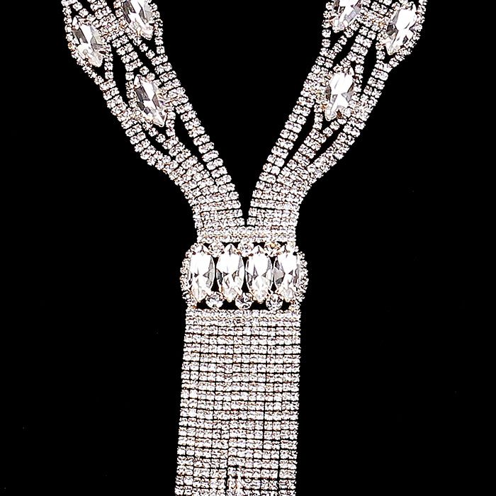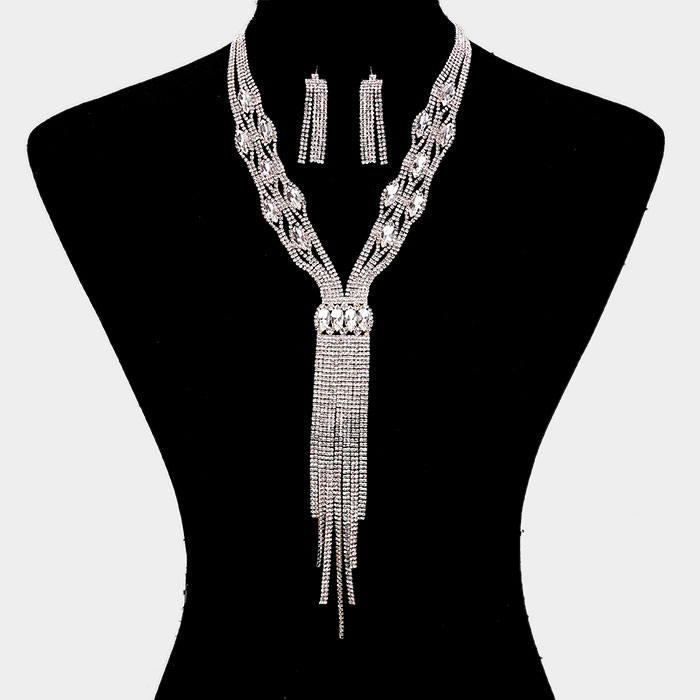 Marquise Stone Fringe Rhinestone Paved Necklace