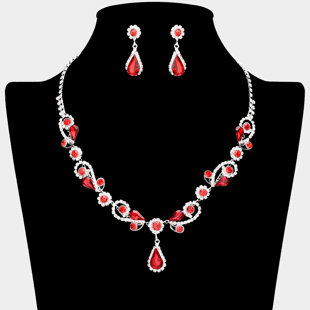 Teardrop Stone Cluster Embellished Evening Necklace