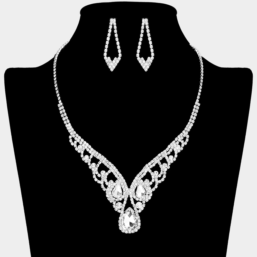 Teardrop Stone Accented Rhinestone Paved V Shape Necklace
