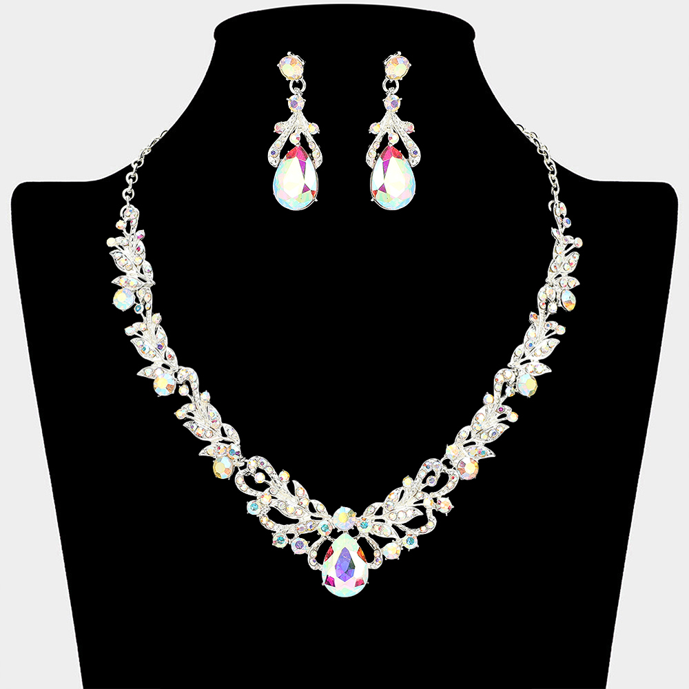 Details • Necklace Size : 18" + 3" L • Decor Size : 1" L • Earrings Size : 1.7" L • Elevate special occasion styling with this elegant necklace and earring set designed with graceful teardrop accents and detailed patterns. Ideal for weddings, formal events, proms, and evening wear, this coordinated set adds refined sparkle and timeless sophistication to any dress or gown.