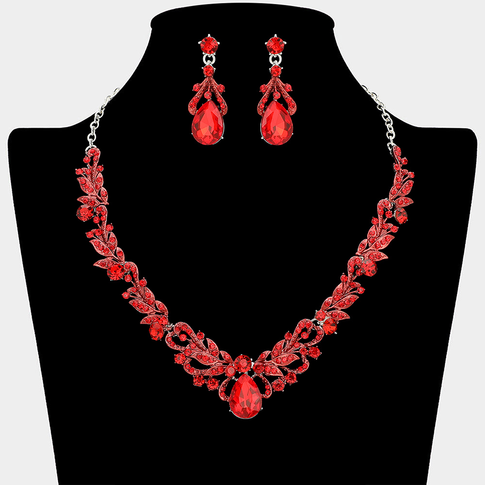 • Elevate special occasion styling with this elegant necklace and earring set designed with graceful teardrop accents and detailed patterns. Ideal for weddings, formal events, proms, and evening wear, this coordinated set adds refined sparkle and timeless sophistication to any dress or gown.