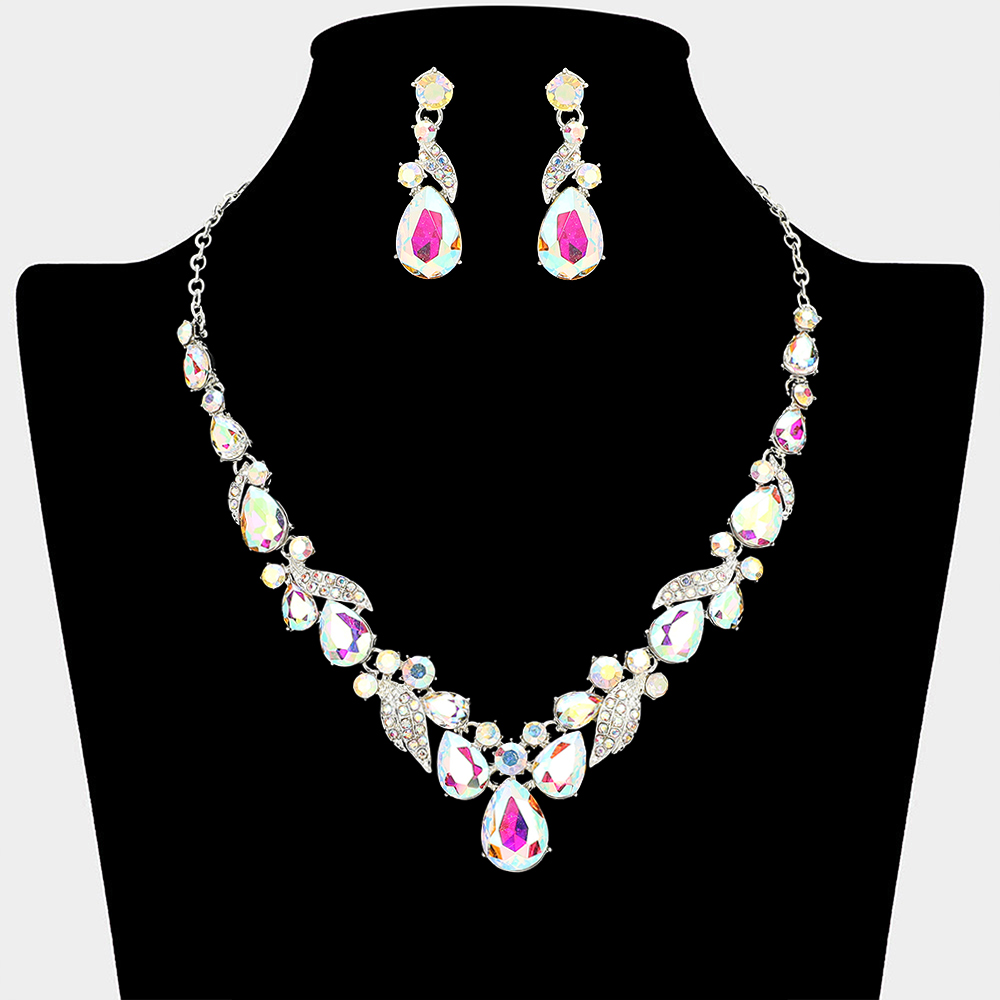 • Elevate formal and evening looks with this statement necklace and earring set featuring layered teardrop and marquise accents arranged in a graceful, eye-catching design. Ideal for weddings, proms, parties, and special occasions, this coordinated set adds dramatic sparkle and refined glamour to any outfit.