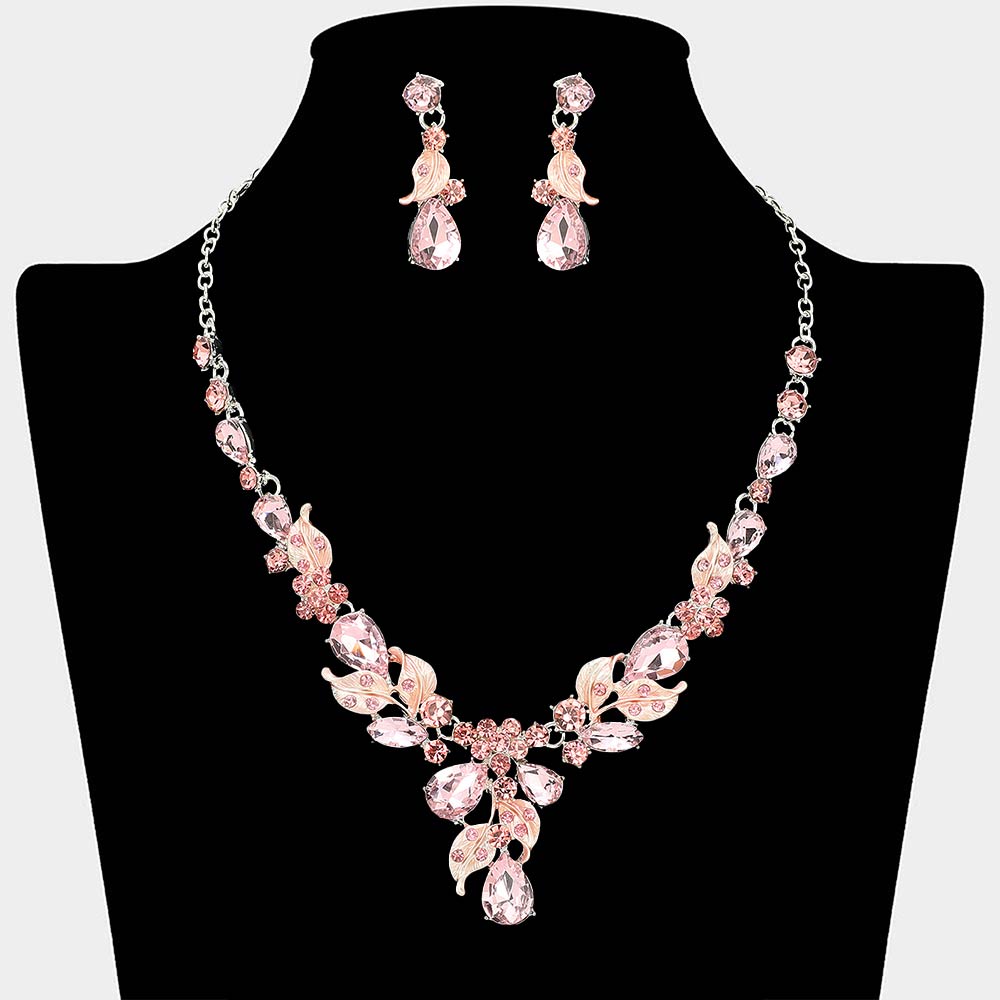 Teardrop Stone Cluster Leaf Embellished Necklace