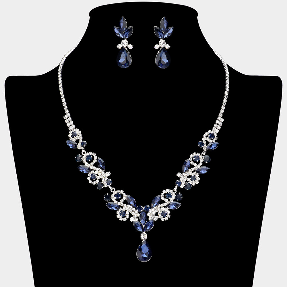 Teardrop Stone Cluster Pendant Marquise Stone Cluster Rhinestone Paved Necklace