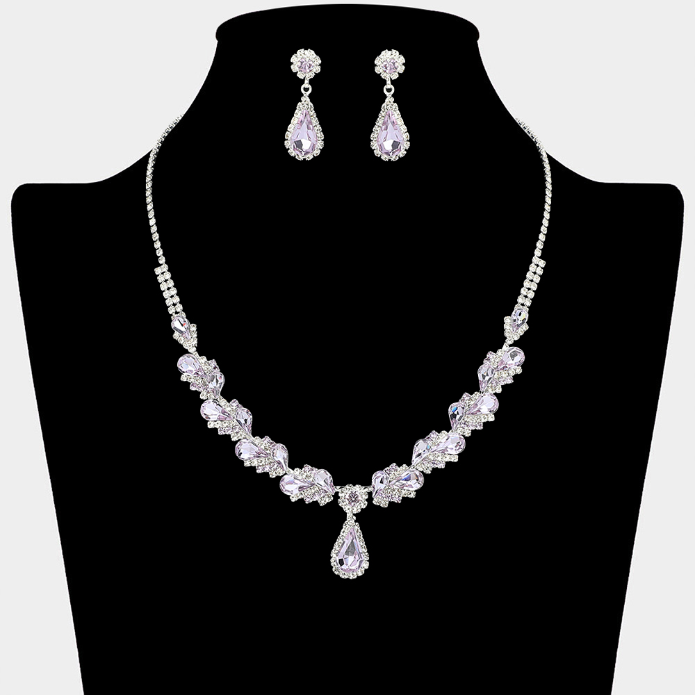 • This teardrop statement necklace and earring set features layered sparkle with elegant drop accents that frame the neckline beautifully. Designed for special occasions, formal events, and evening styling, it offers a refined coordinated look ideal for boutiques and gift-ready collections.