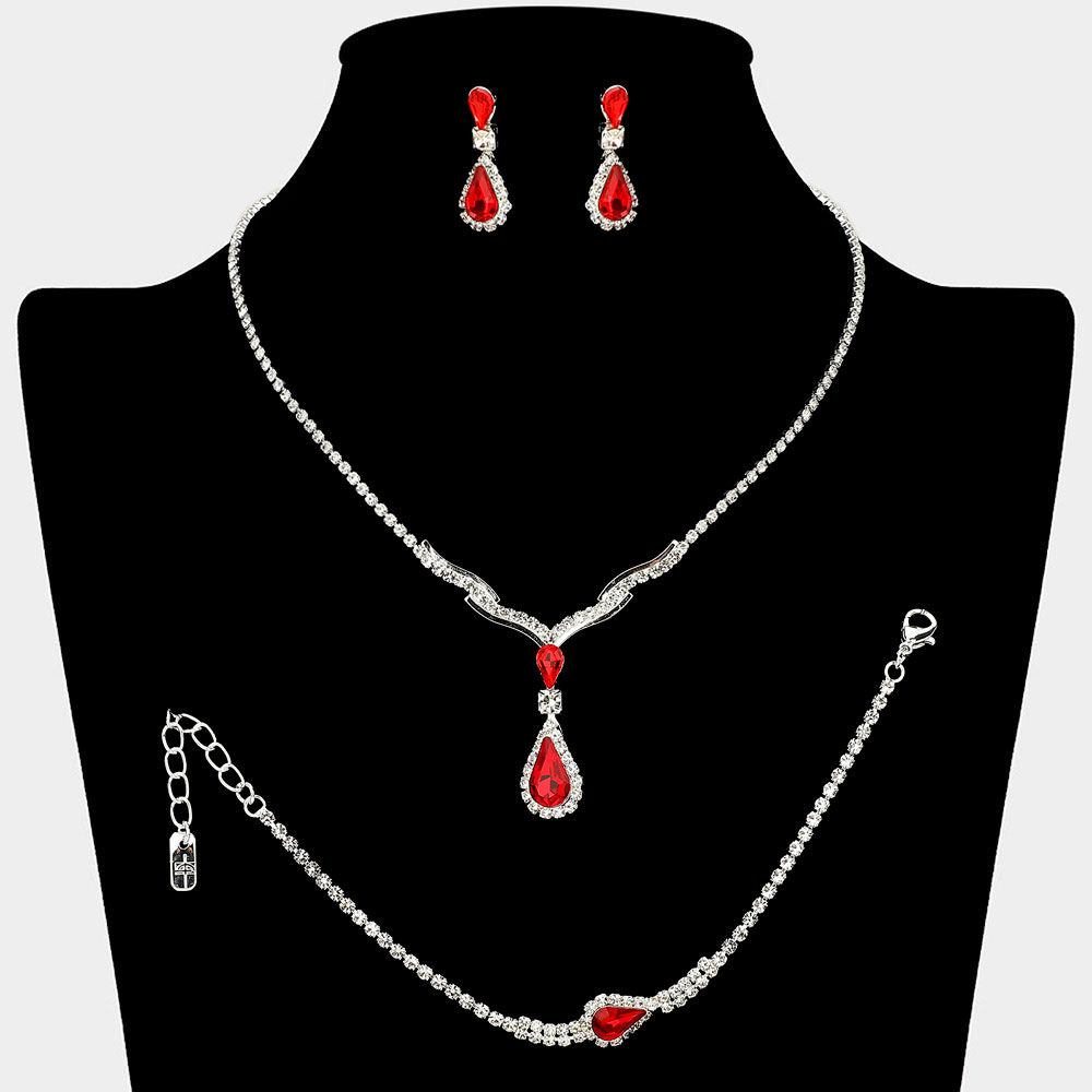 Teardrop Stone Pendant Accent Rhinestone Paved Jewelry Set