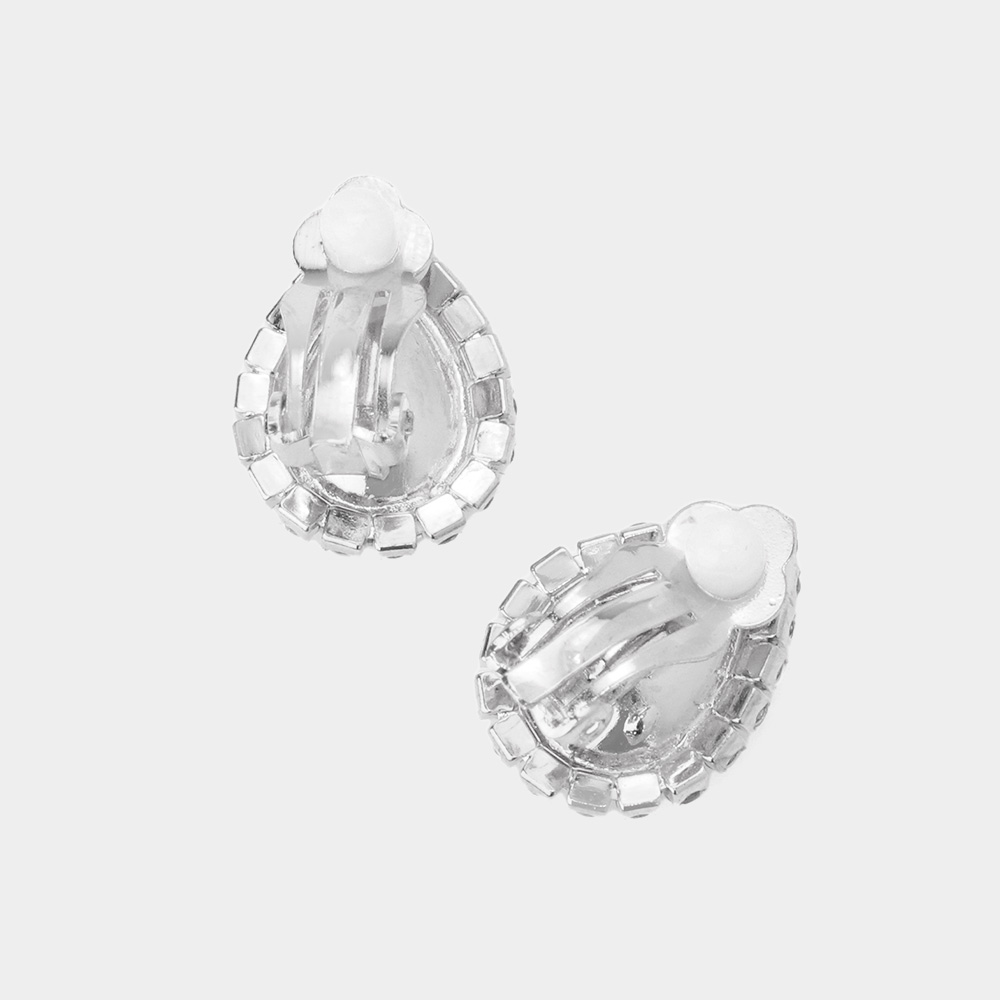Square Teardrop Stone Accented Dangle Evening Clip on Earrings