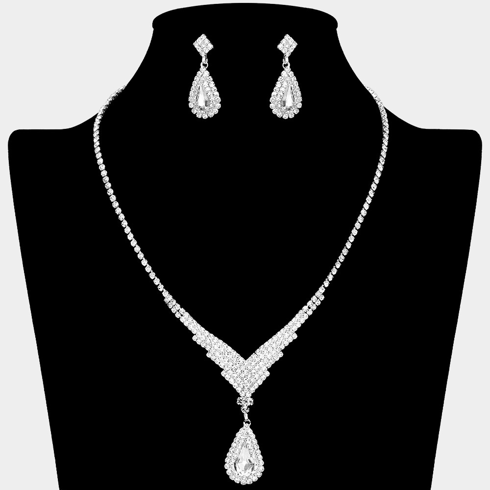Teardrop Stone Pendant Pointed Rhinestone Paved Necklace