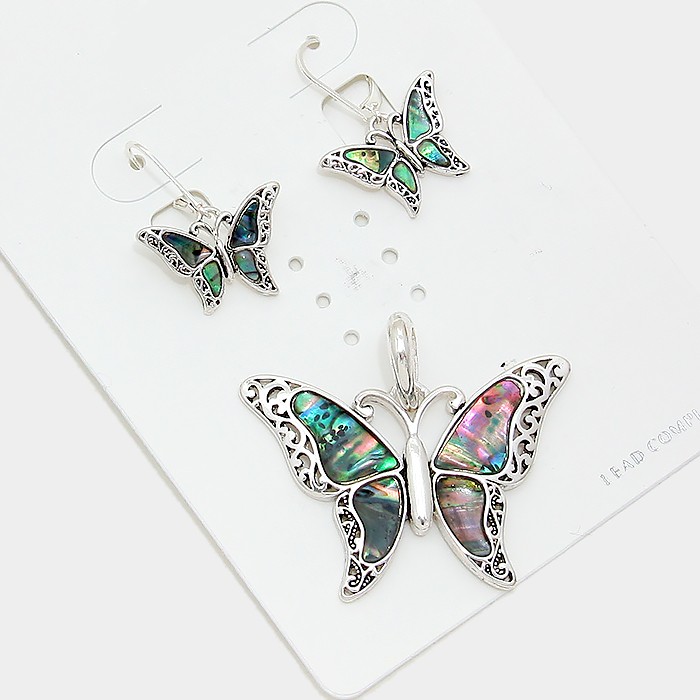 Abalone butterfly pendant set