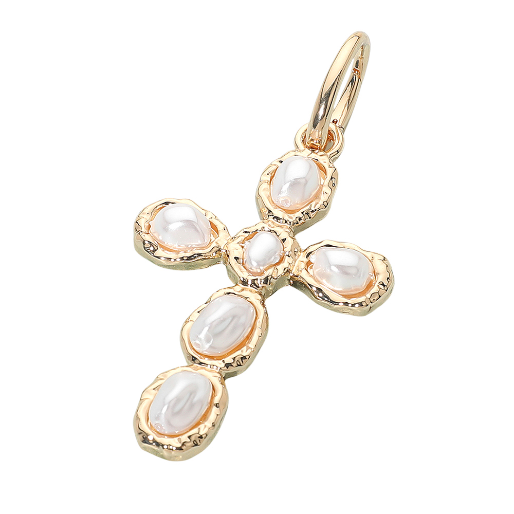 Details • Size : 1.4" X 2.75" • Enhance your jewelry collection with this pearl cross charm featuring lustrous, sculpted accents that bring depth and elegance to any accessory. Its refined silhouette adds a timeless, polished touch ideal for bracelets, necklaces, or layered charm styling. • Lead and Nickel Compliant
