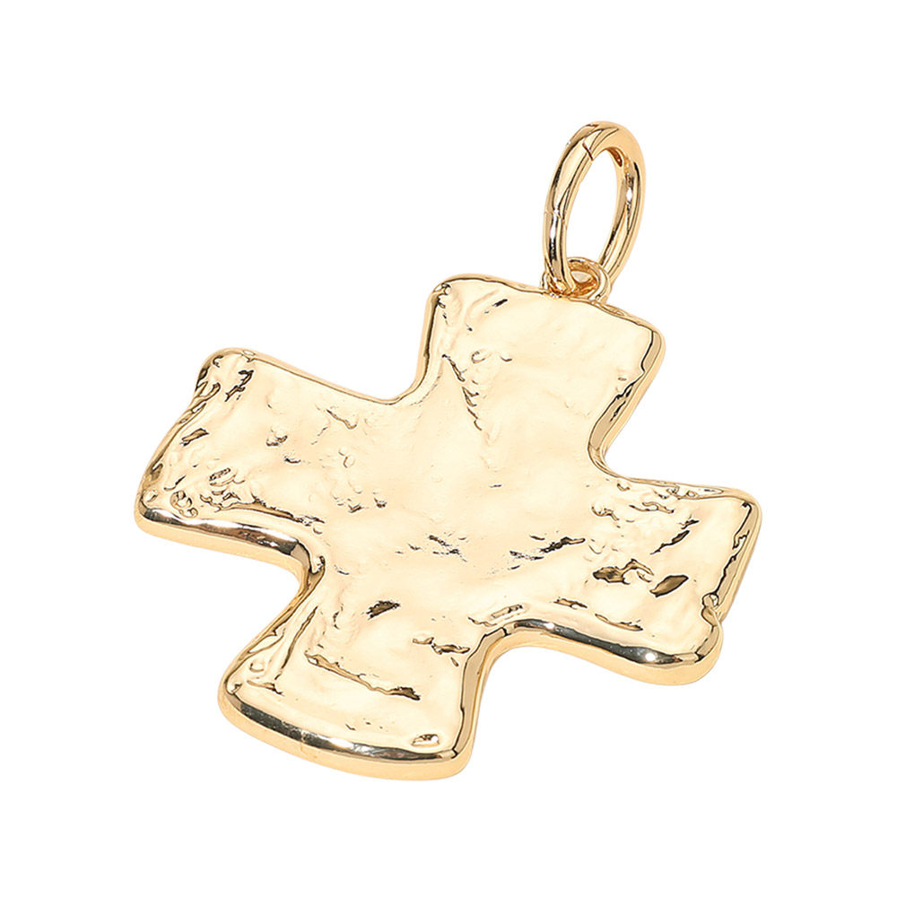 Details • Size : 2" X 2.5", 3" L • This bold cross pendant charm features a beautifully textured finish that adds dimension and character to its timeless silhouette. Perfect for adding a touch of strength and style to any chain or bracelet, it embodies both modern design and classic symbolism in one elegant piece. • Lead and Nickel Compliant