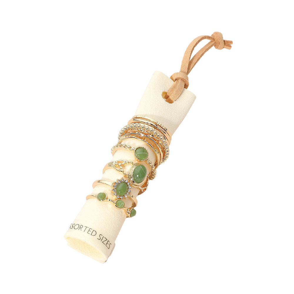Details • Size : 0.1" - 0.4" H (Assorted Size: 5,6,7,8,9) • Discover this Stacking Ring Set featuring a curated selection of complementary rings designed to be worn together or styled separately. Mix and match to create unique looks for everyday wear or special occasions, delivering versatile elegance and effortless customization to any accessory collection.