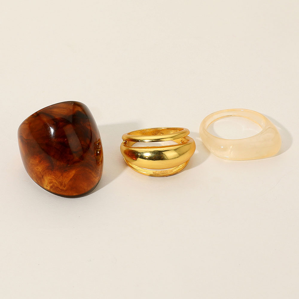 3PCS - Mixed Shaped Bold Resin Metal Ring Set