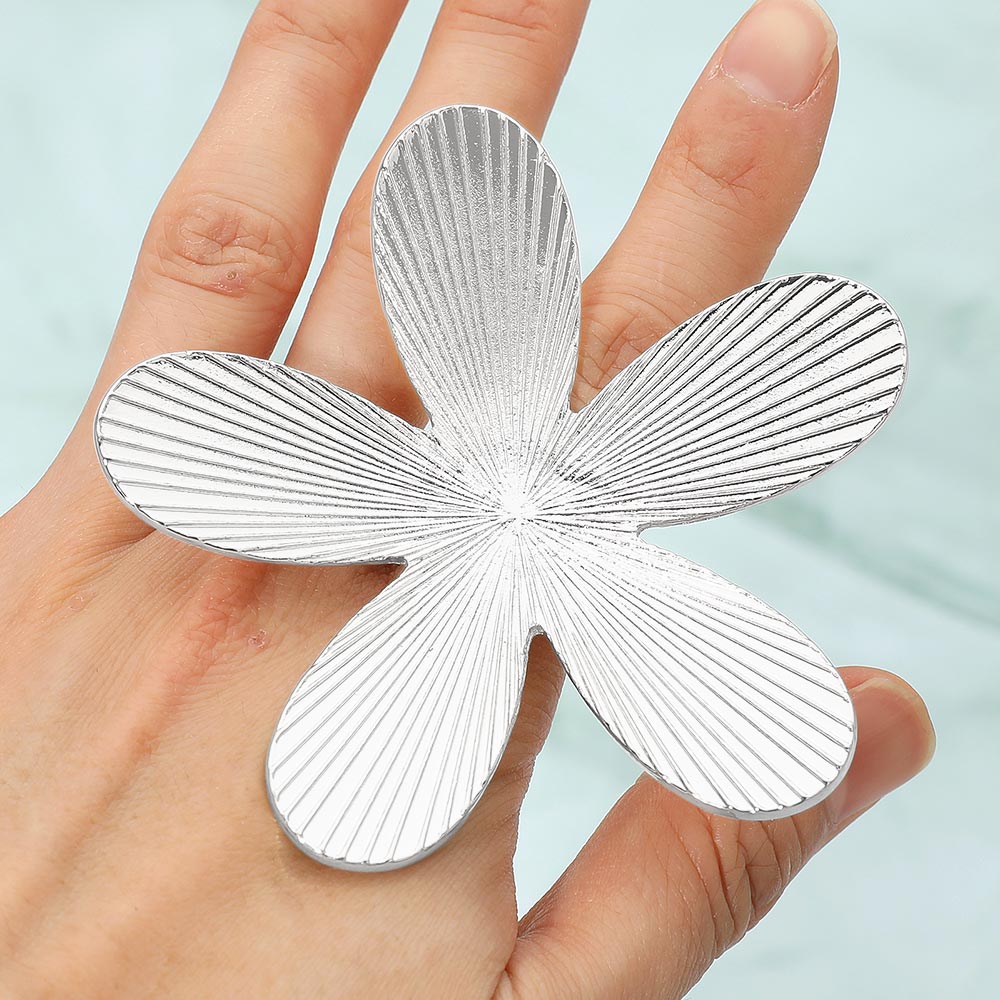 • Make a dramatic style statement with this oversized floral statement ring featuring a sleek sculpted petal design. Lightweight for comfortable wear despite its bold look, it’s perfect for elevating everyday outfits or completing special occasion ensembles with confident, contemporary flair.