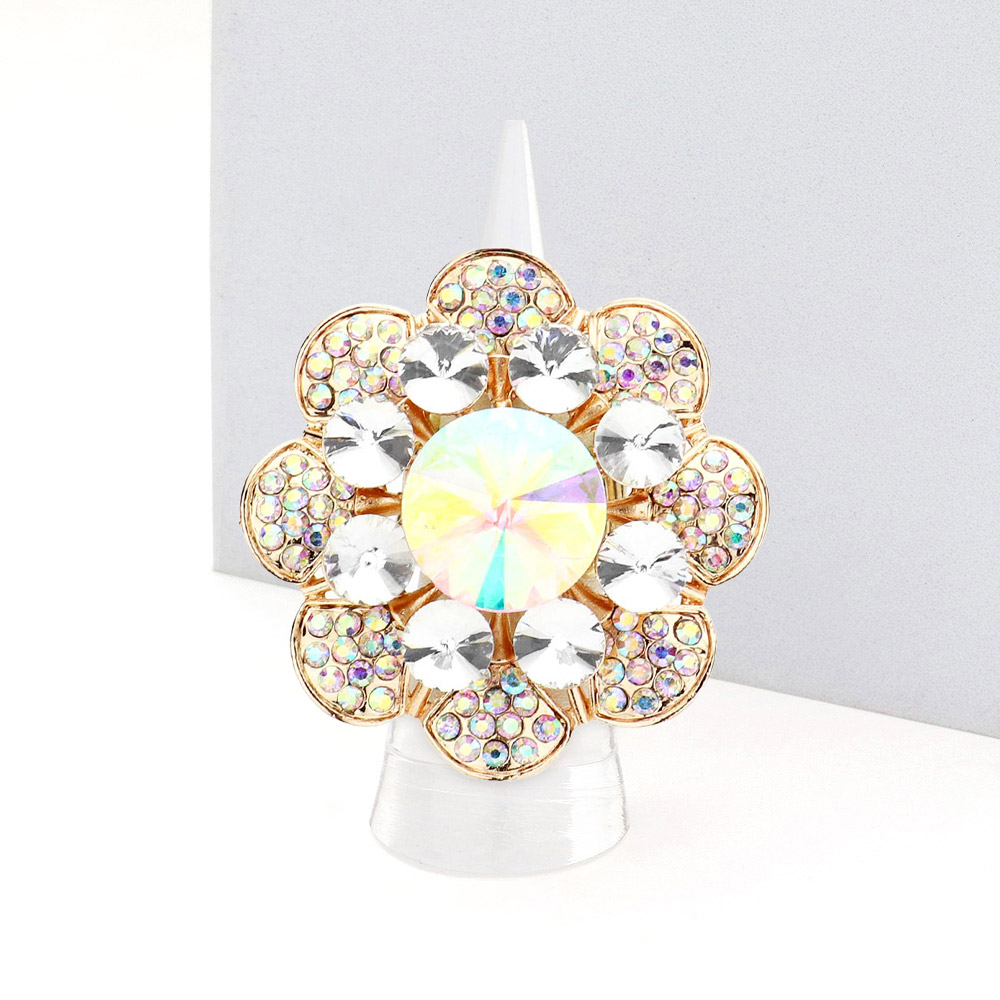 Details • Size : 1.75" X 1.75" • Stretchable • Dazzling flower cocktail ring embellished with radiant crystals. Designed to catch the light beautifully, this statement accessory is ideal for parties, weddings, or gifting. Adjustable for a comfortable and elegant fit. • Lead and Nickel Compliant