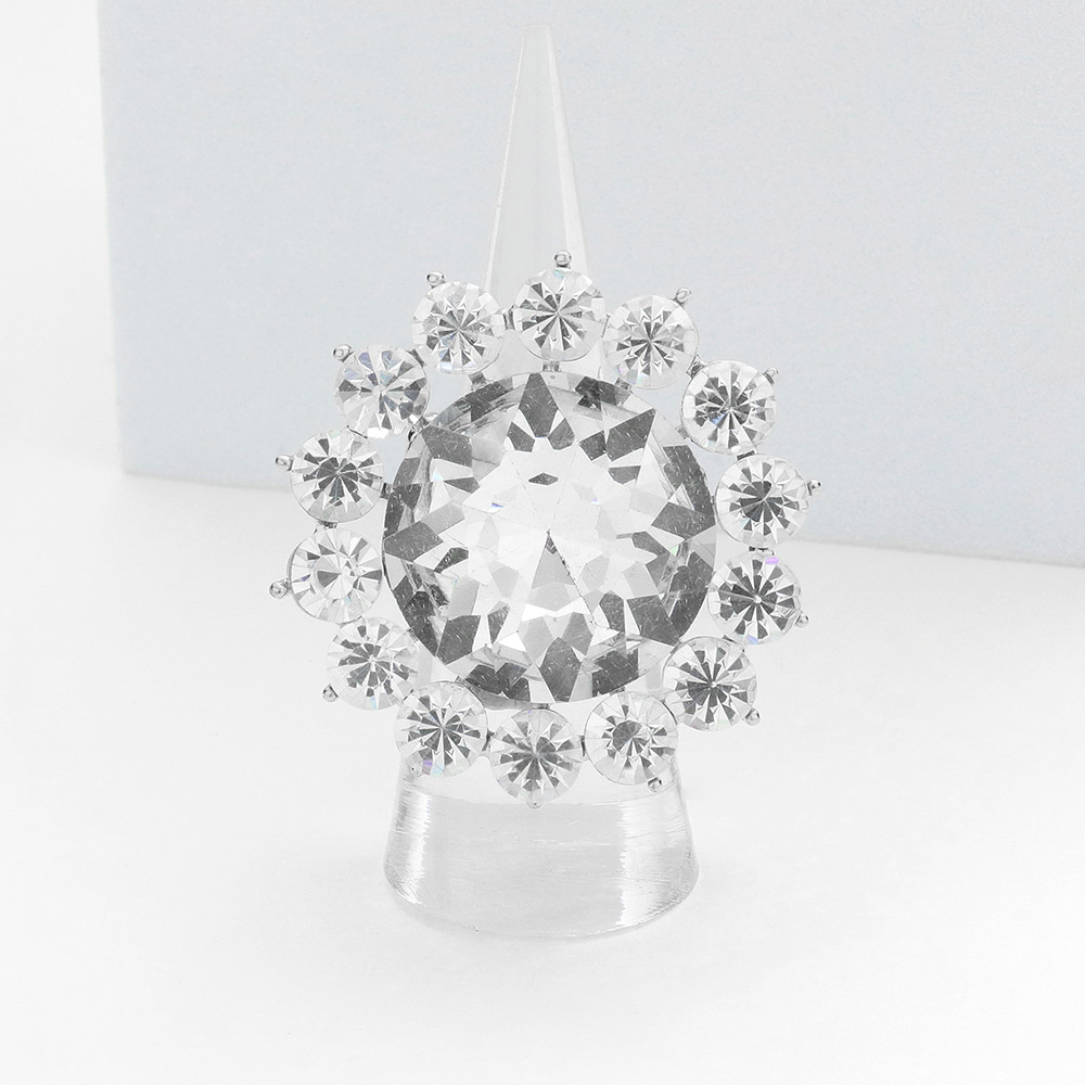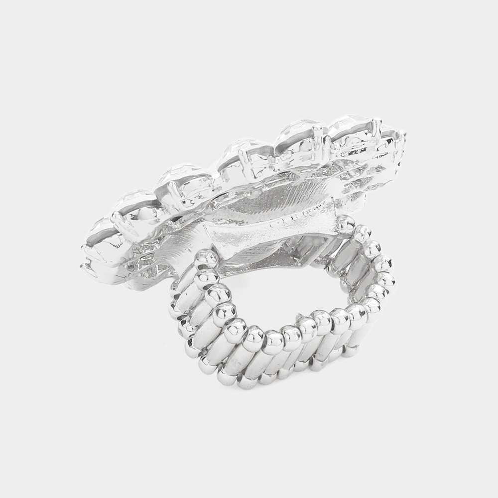 Rhinestone Pave High Heel Flower Lipstick Stretch Ring