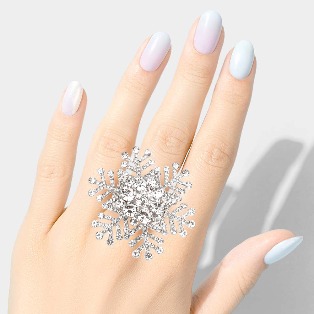 • Add a touch of winter sparkle to your look with this crystal snowflake statement ring. Designed with intricate detailing and radiant shine, it’s the perfect accessory for festive occasions, holiday parties, or elevating your everyday style with dazzling elegance.