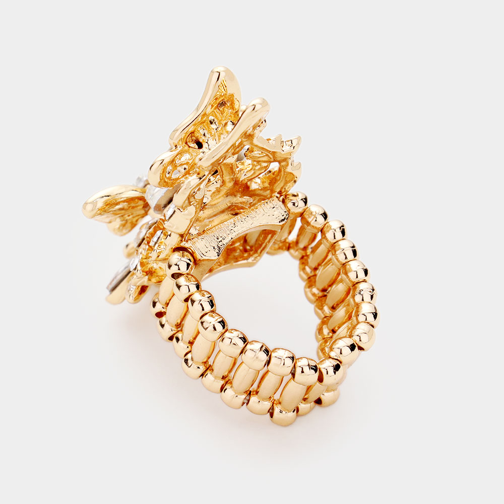 Crystal Pave Floral Butterfly Stretch Ring