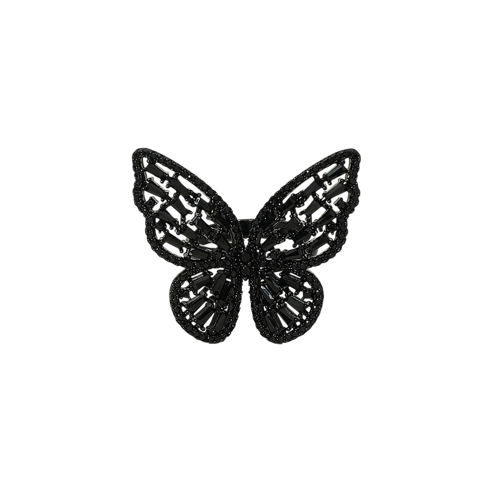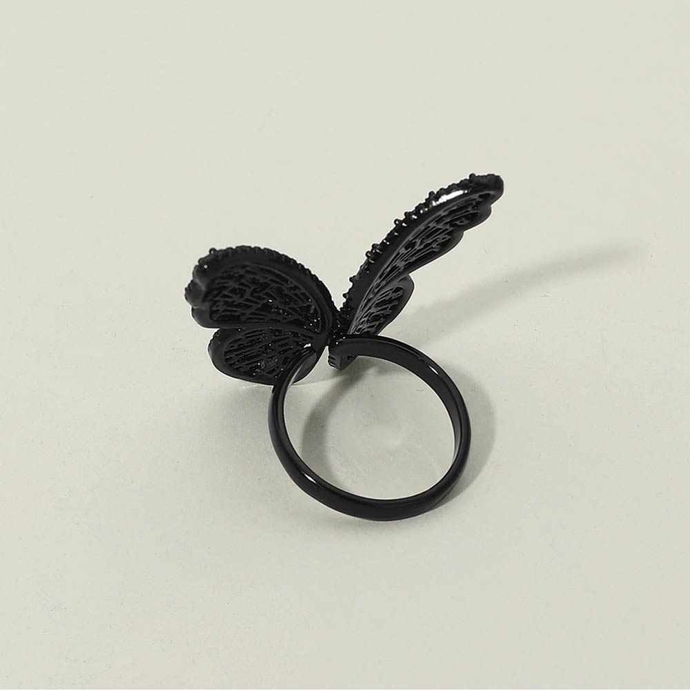 Details • Size : 1.25" H • Adjustable • This elegant butterfly filigree ring features a delicate openwork silhouette designed to add a graceful, feminine accent to everyday and occasion styling. A versatile statement piece for boutiques seeking symbolic jewelry that pairs easily with dresses, casual outfits, and layered accessory looks. • Lead and Nickel Compliant • CZ Cubic Zirconia