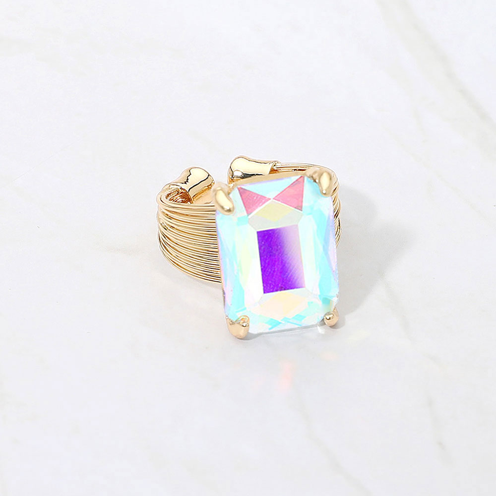 Details • Size : 0.5" X 0.7" • Adjustable • Make a bold impression with this rectangular stone cocktail ring, featuring a faceted centerpiece set in a textured band. A perfect balance of sophistication and edge, ideal for elevating both casual and evening looks. • Lead and Nickel Compliant