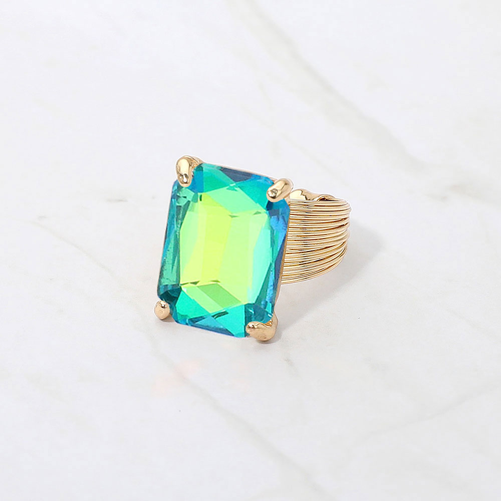 Details • Size : 0.5" X 0.7" • Adjustable • Make a bold impression with this rectangular stone cocktail ring, featuring a faceted centerpiece set in a textured band. A perfect balance of sophistication and edge, ideal for elevating both casual and evening looks. • Lead and Nickel Compliant