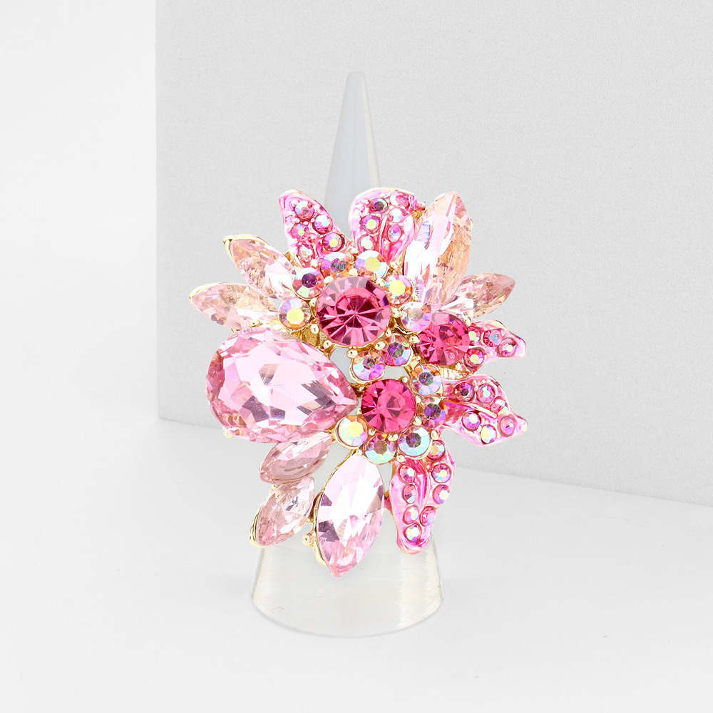 Rhinestone Pave Marquise Stone Leaf Stretch Evening Bracelet
