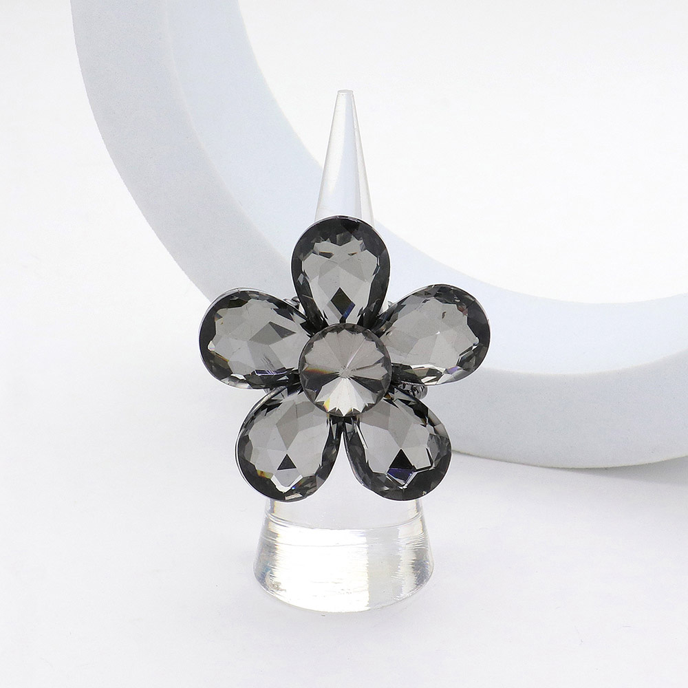 • Elegant flower-shaped statement ring featuring a dazzling faceted petal design that catches the light beautifully. Perfect for adding a bold, eye-catching accent to any outfit, this gem-inspired accessory enhances your style with its unique shape and sparkling radiance.