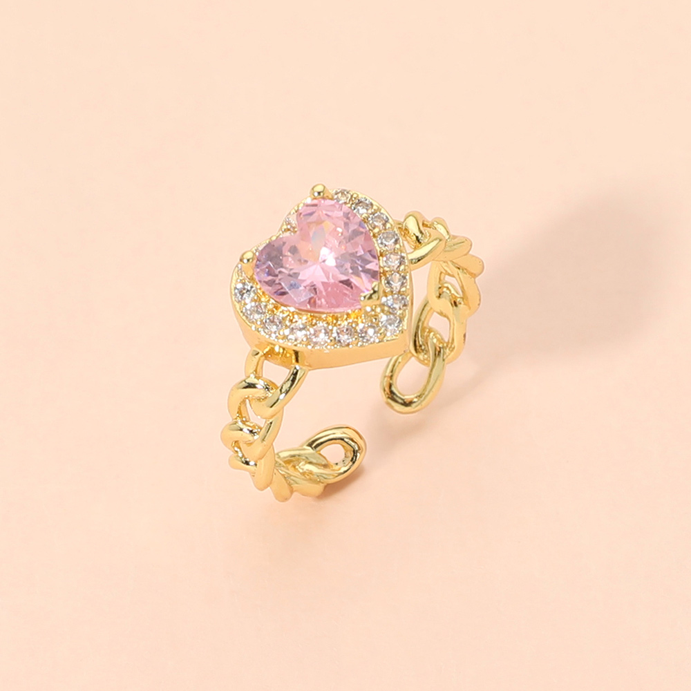 Heart CZ Stone Accent Adjustable Chain Ring Heart CZ Stone Accent Adjustable Chain Ring Heart CZ Stone Accent Adjustable Chain Ring