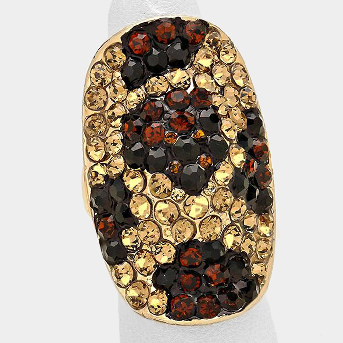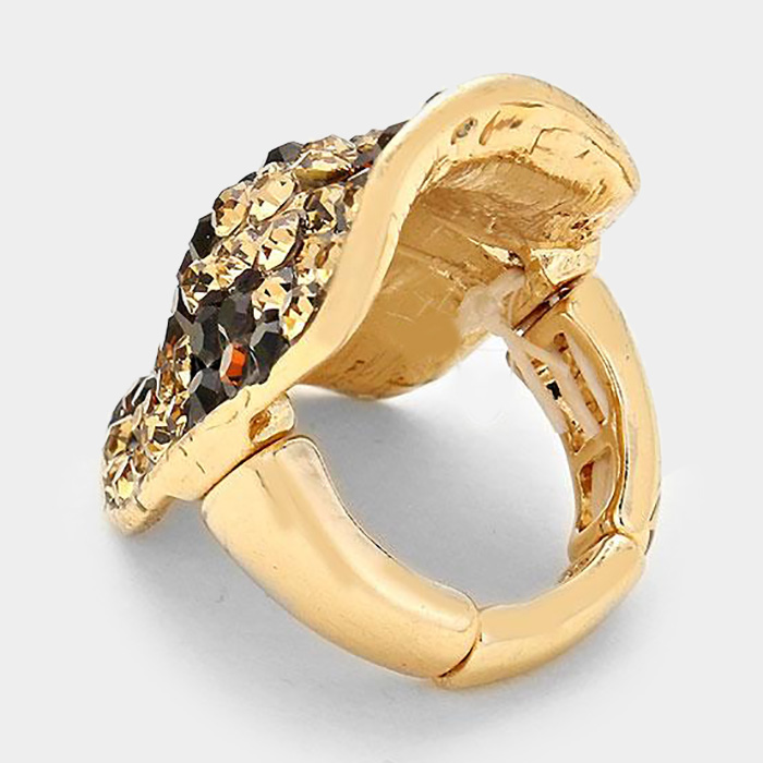 Leopard Pattern Crystal Rhinestone Pave Stretch Cocktail Ring