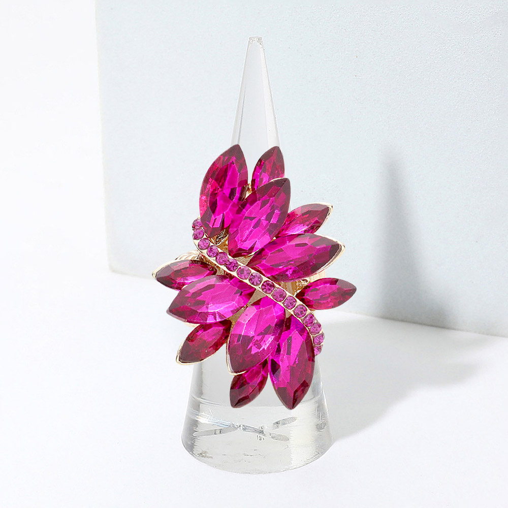 • Shine bright with a statement cocktail ring designed in a striking crystal leaf motif. Featuring multi-faceted stones and dazzling sparkle, this glamorous accessory is perfect for parties, special occasions, or elevating everyday outfits with bold elegance.