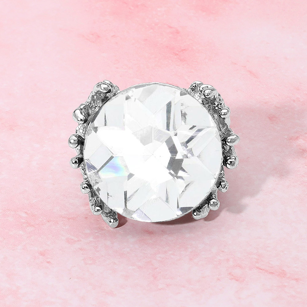 • Make a dramatic style statement with this oversized gemstone ring featuring a large faceted stone framed by an ornate decorative setting. Perfect for parties, evening wear, or special events, this bold ring adds instant glamour and standout appeal to any jewelry collection.