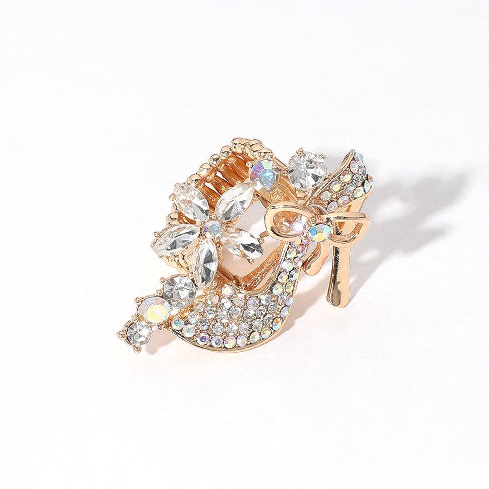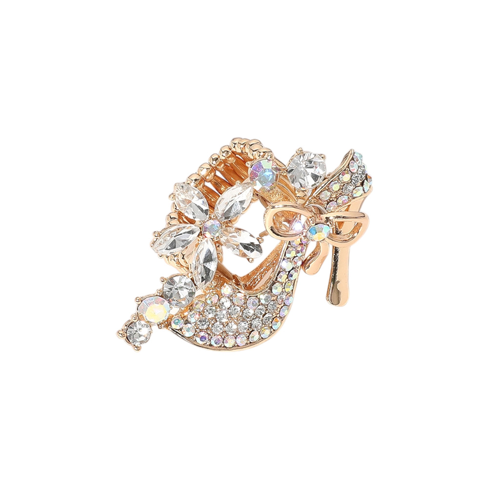 • Add sparkle and charm to your look with this crystal brooch featuring a high heel design adorned with floral details and a dainty bow. Perfect for accessorizing blazers, scarves, or bags, this statement piece elevates any outfit with a touch of glamour and elegance.