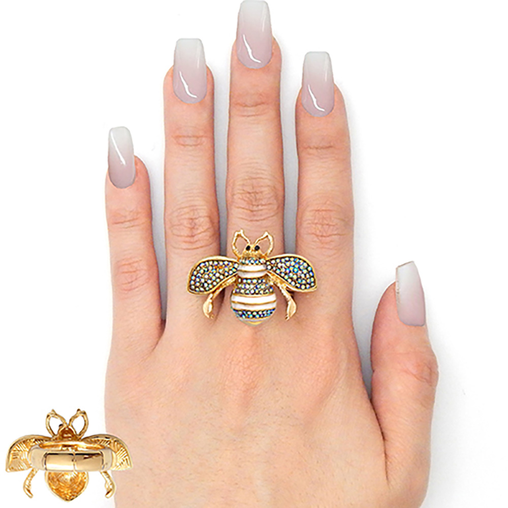 Rhinestone Embellished Honey Bee Stretch Ring