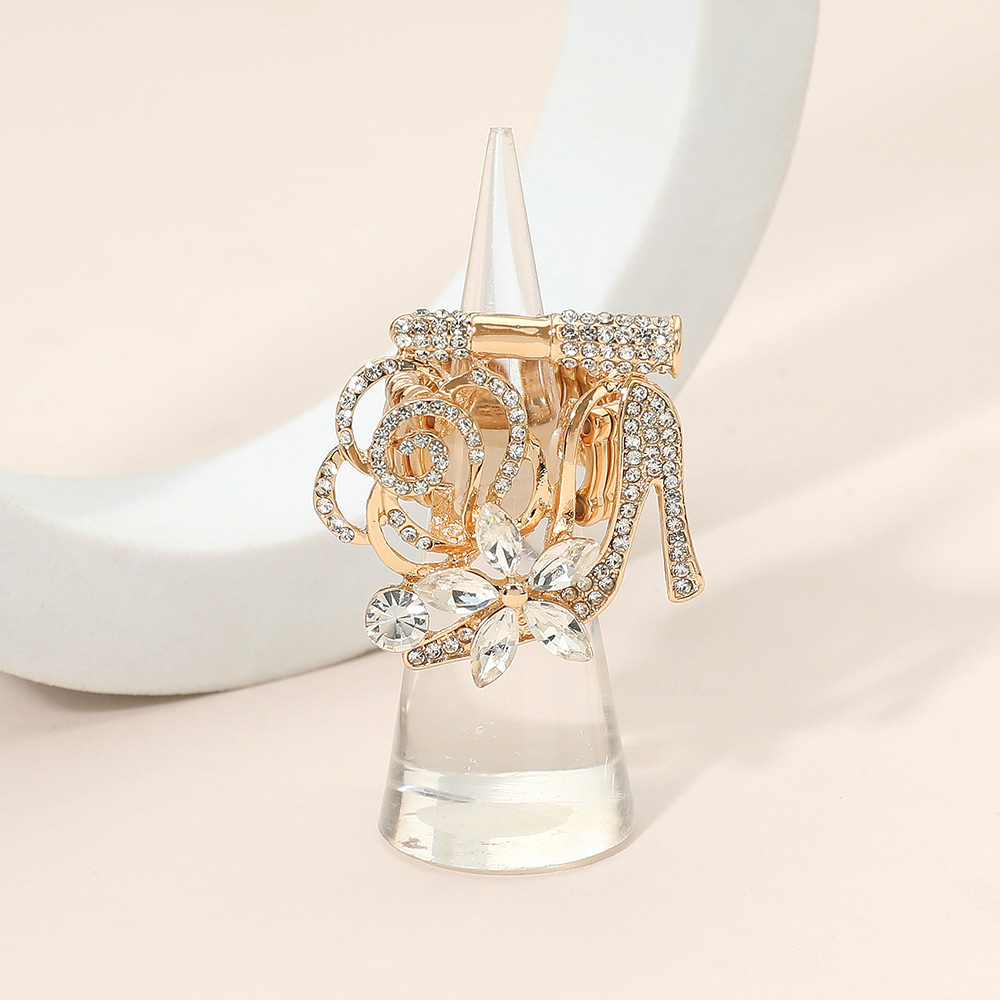Rhinestone Pave High Heel Flower Lipstick Stretch Ring Rhinestone Pave High Heel Flower Lipstick Stretch Ring