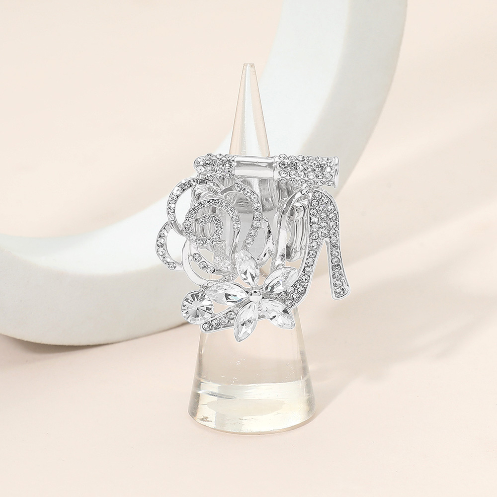 Rhinestone Pave High Heel Flower Lipstick Stretch Ring Rhinestone Pave High Heel Flower Lipstick Stretch Ring