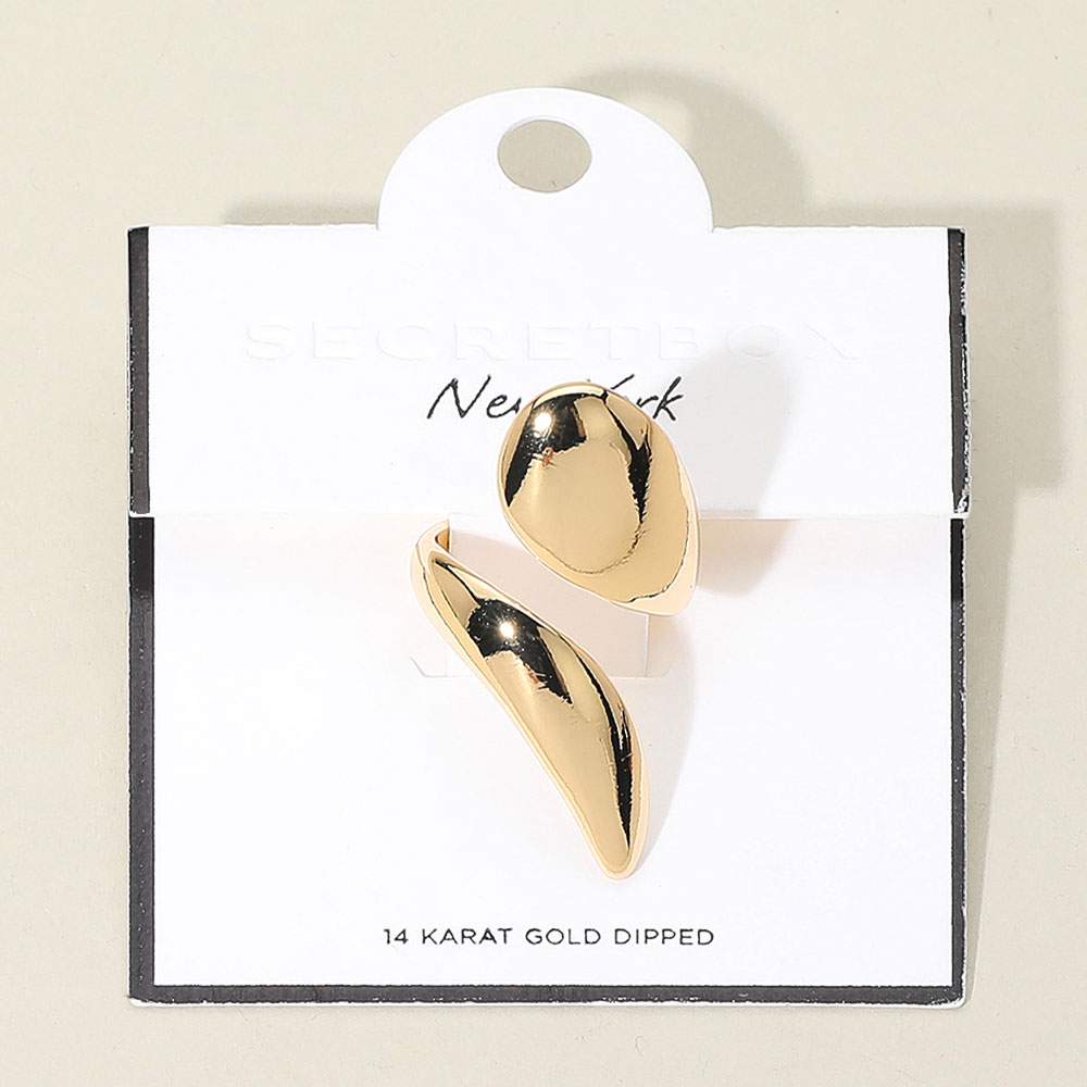 Details • Size : 1.4" H • Adjustable • Contemporary adjustable wrap ring featuring a sleek sculpted silhouette. A bold statement piece that combines modern elegance with artistic flair, perfect for elevating any look effortlessly. • Gold Dipped
