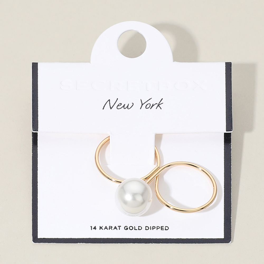 SECRET BOX_14K Gold Dipped Pearl Accented Two Finger Ring