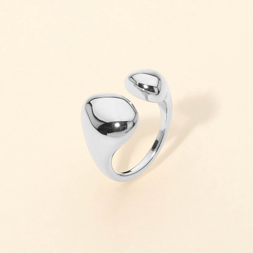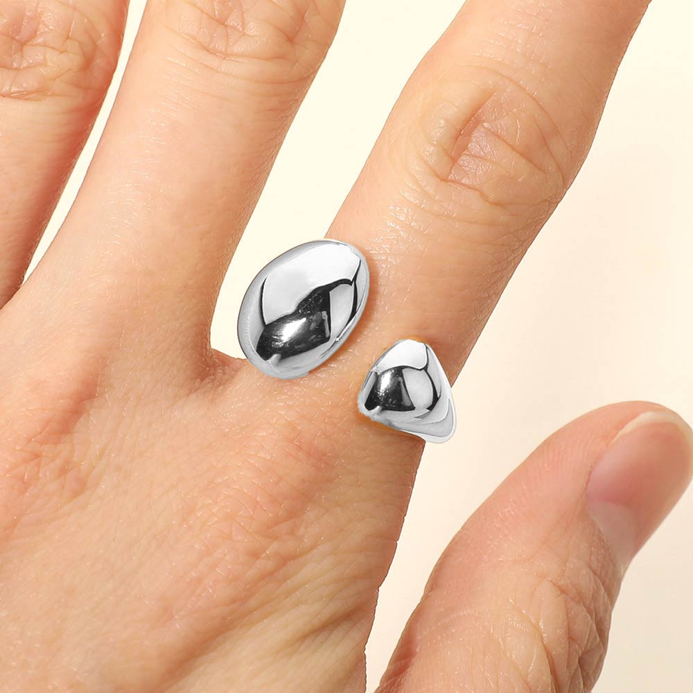 • Bold adjustable ring featuring a smooth asymmetrical dome design that creates a modern sculptural look. The open wrap construction allows flexible sizing while delivering a high-impact statement. A versatile fashion ring ideal for everyday wear, gifting, and boutique collections seeking clean, contemporary jewelry silhouettes.