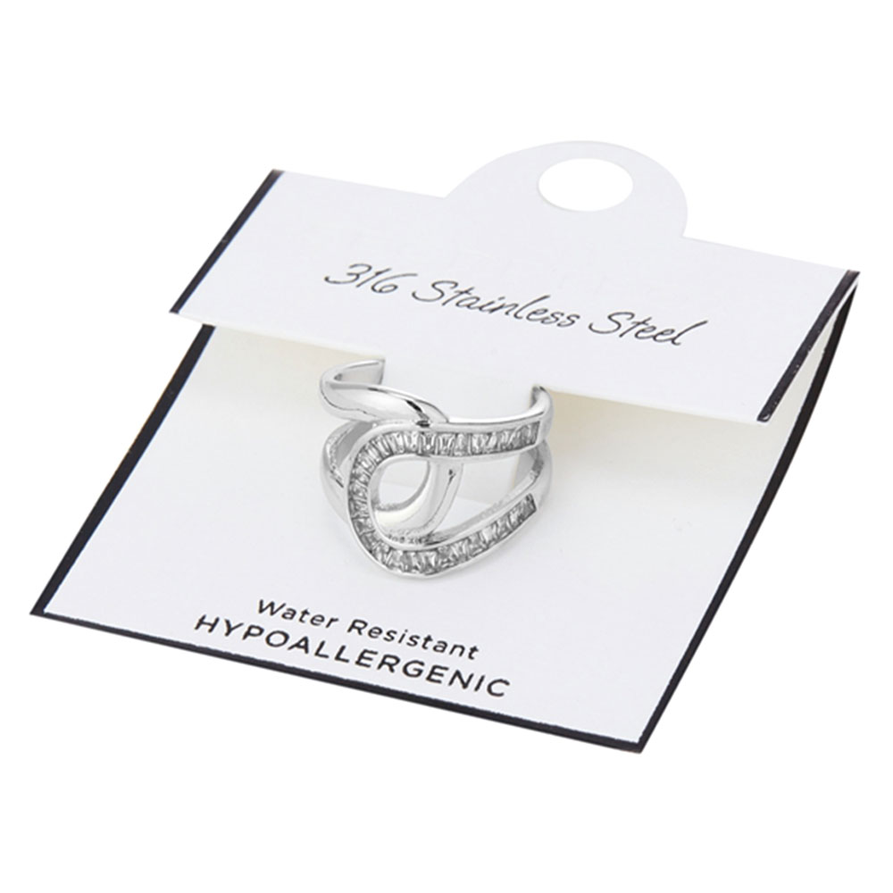 SECRET BOX_Stainless Steel Baguette Stone Accent Bold Twist Ring