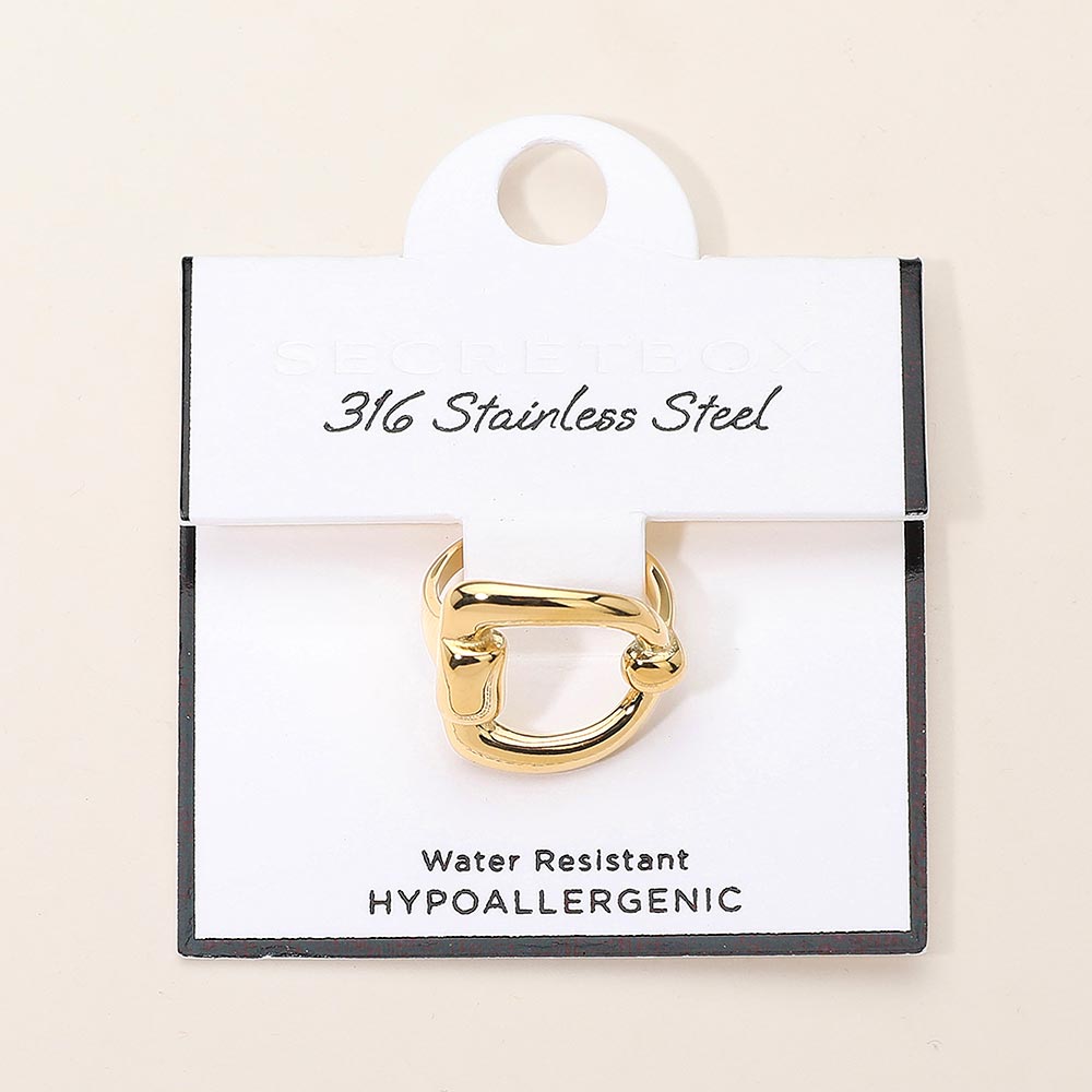 • Contemporary geometric stainless steel open ring featuring a bold sculptural silhouette with smooth, polished curves. Its modern artistic design adds a touch of sophistication and creativity to any look, making it a perfect statement accessory for both casual and elegant styles.