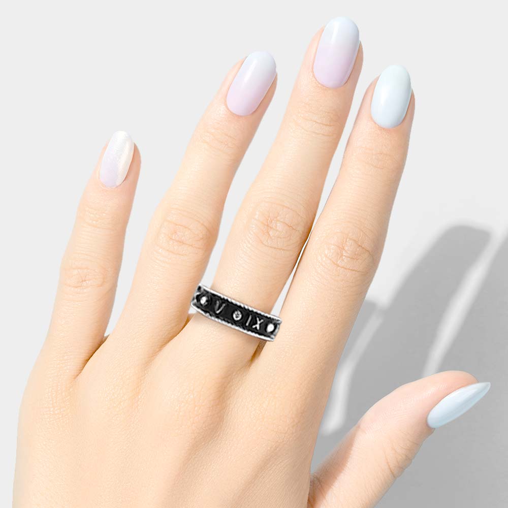 Stone Embellished Enamel Metal Roman Numerals Stretch Ring