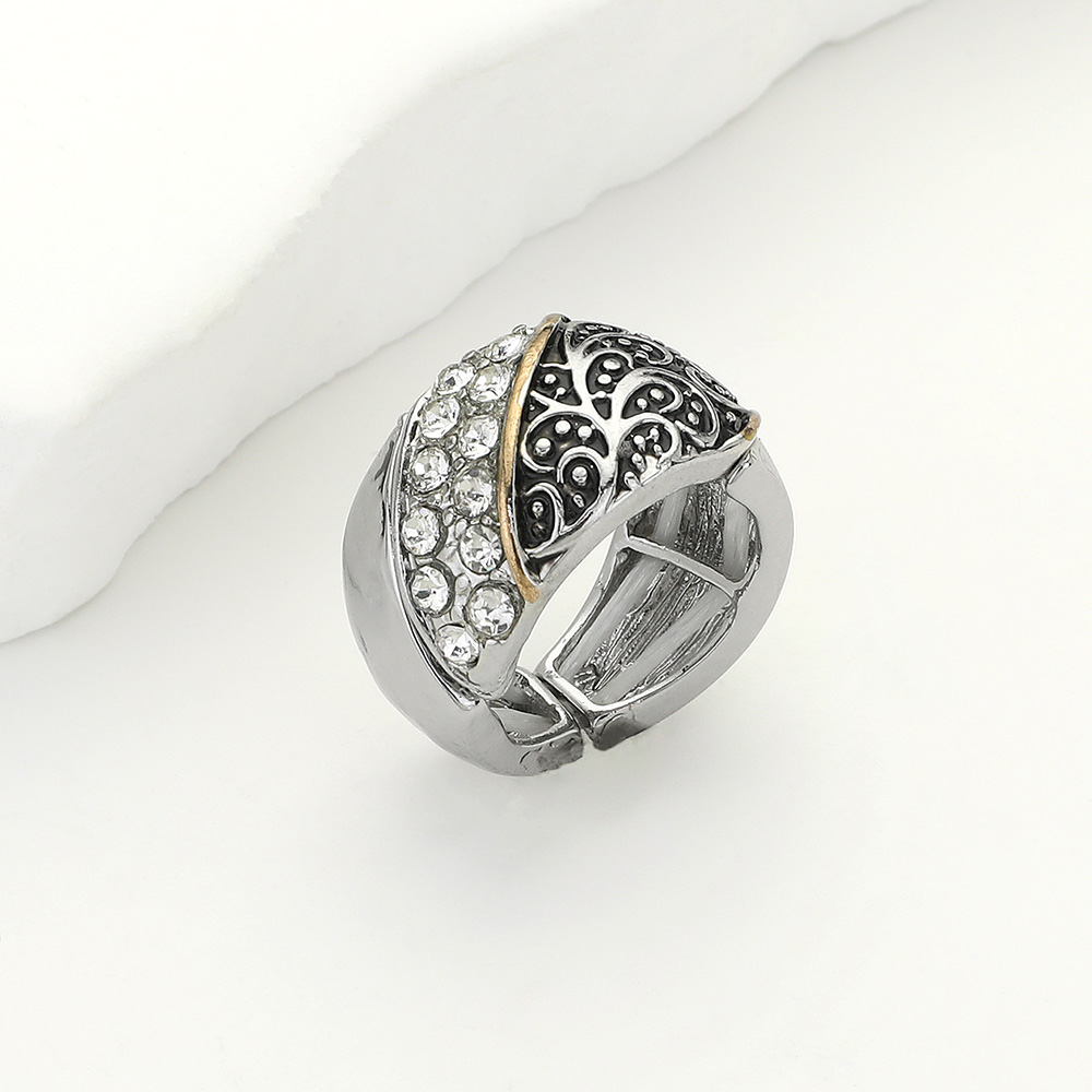Details • Size : 0.6" H • Stretchable • Striking dome ring featuring intricate filigree patterns and shimmering crystal accents. A bold yet elegant accessory that adds a refined touch to both everyday and formal looks. • Lead and Nickel Compliant
